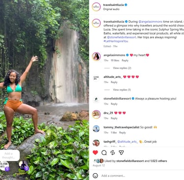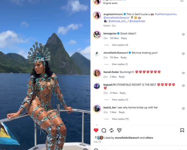 The final video told a powerful, contrast-driven story of St Lucia, from high-energy celebration to tranquil retreat. Angela Simmons shared the content with her audience of over 8 million followers, delivering exceptional reach and global visibility for the island, while positioning St Lucia as a destination that offers both unforgettable experiences and restorative calm.